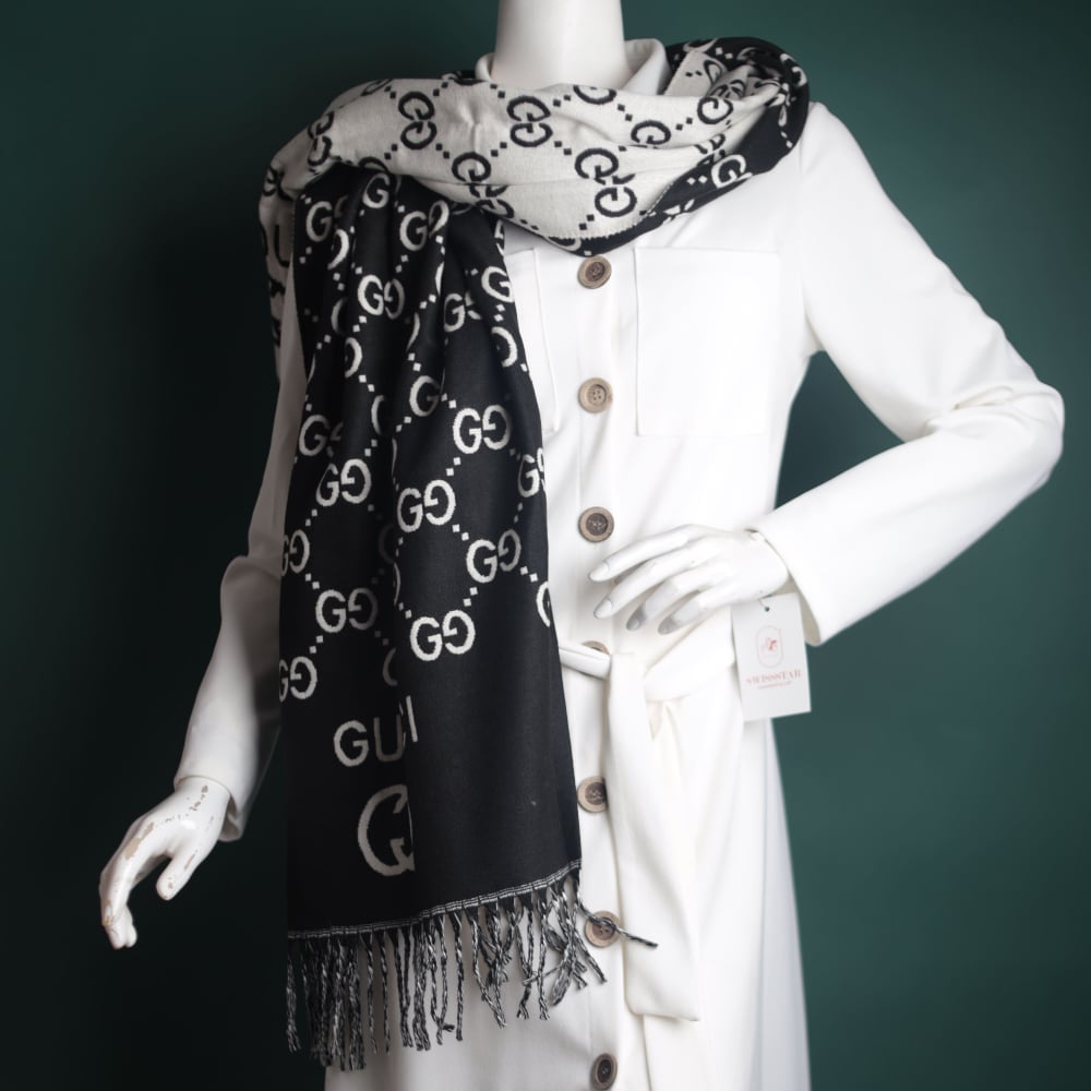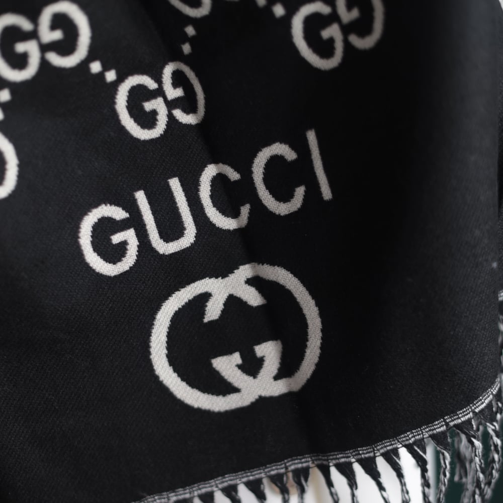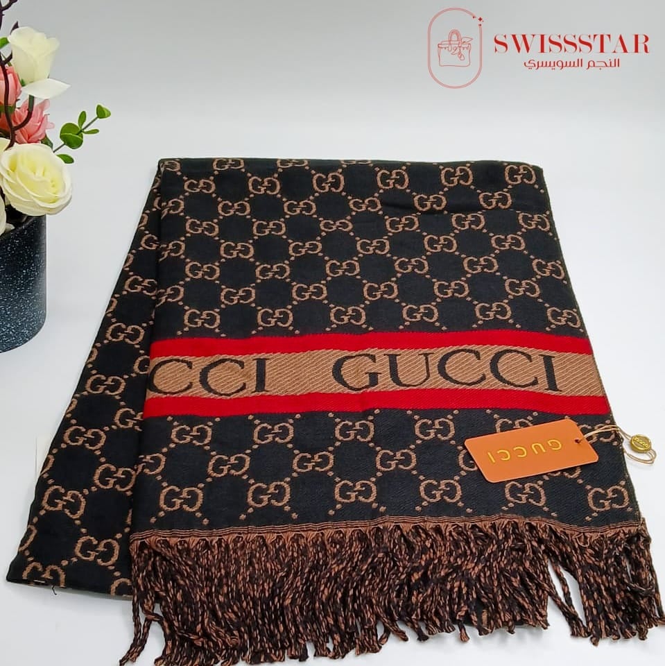 - التصميم: يتميز الشال بتصميم فريد وفاخر يحمل توقيع ماركة قوتشي العالمية، مما يجسد الأناقة والفخامة.