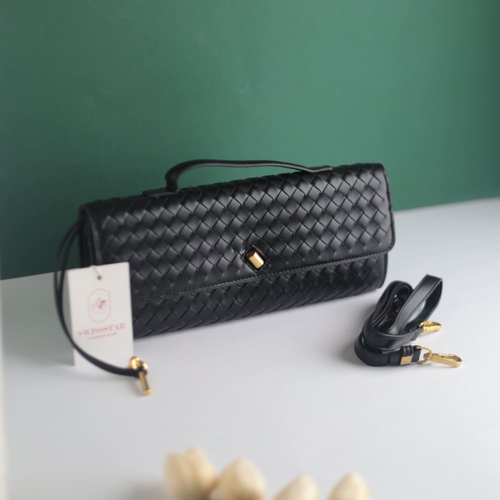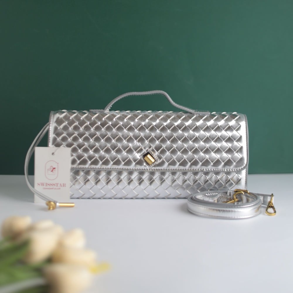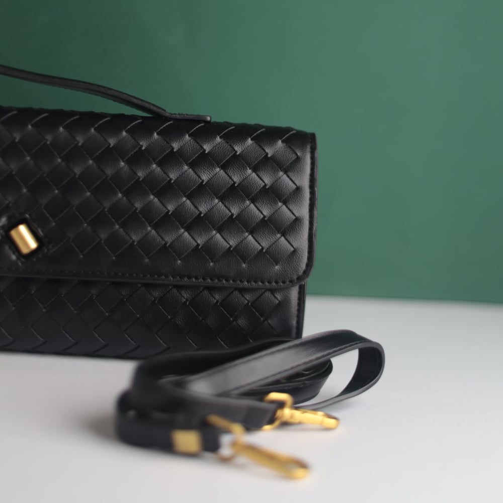 - اللمسات الفاخرة: مزودة بتفاصيل فاخرة مثل شعار بوتيغا فينيتا انديامو كلاتش المميز وزخارف معدنية عالية الجودة.