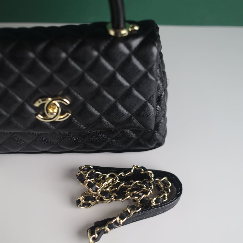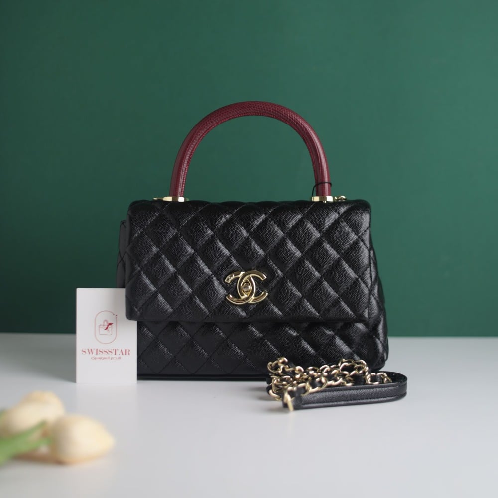 - تتزين شنط شانيل بشعار العلامة التجارية المميز الذي يعكس هوية شانيل ويضفي عليها لمسة من الرفاهية.