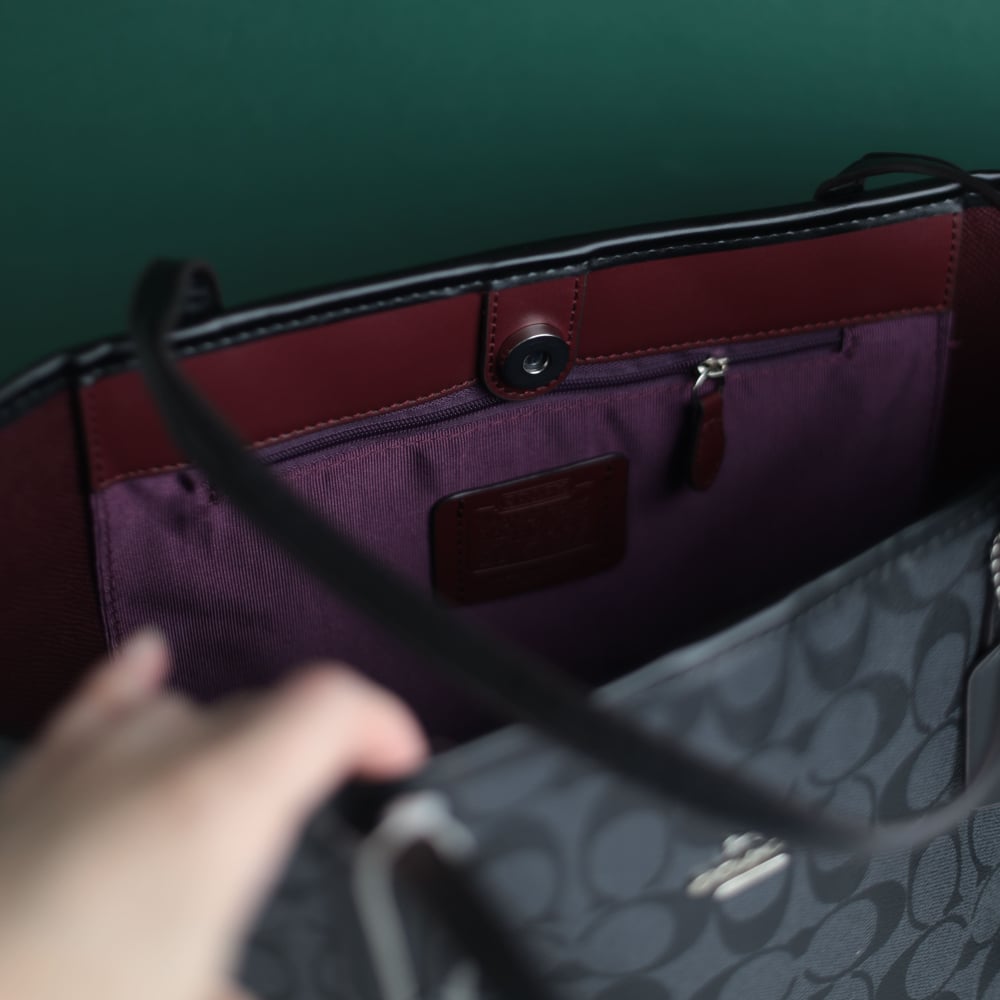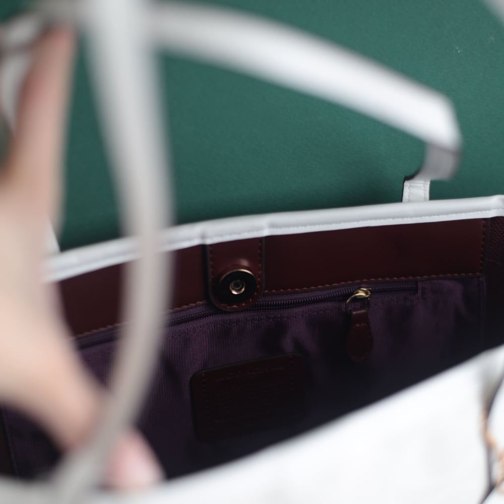 - تأتي شنطة ماركة coach بدون سحاب حيث يمكنك الوصول بسهولة إلى محتويات الشنطة ووضعها، مما يسهل استخدامها في الحياة اليومية.