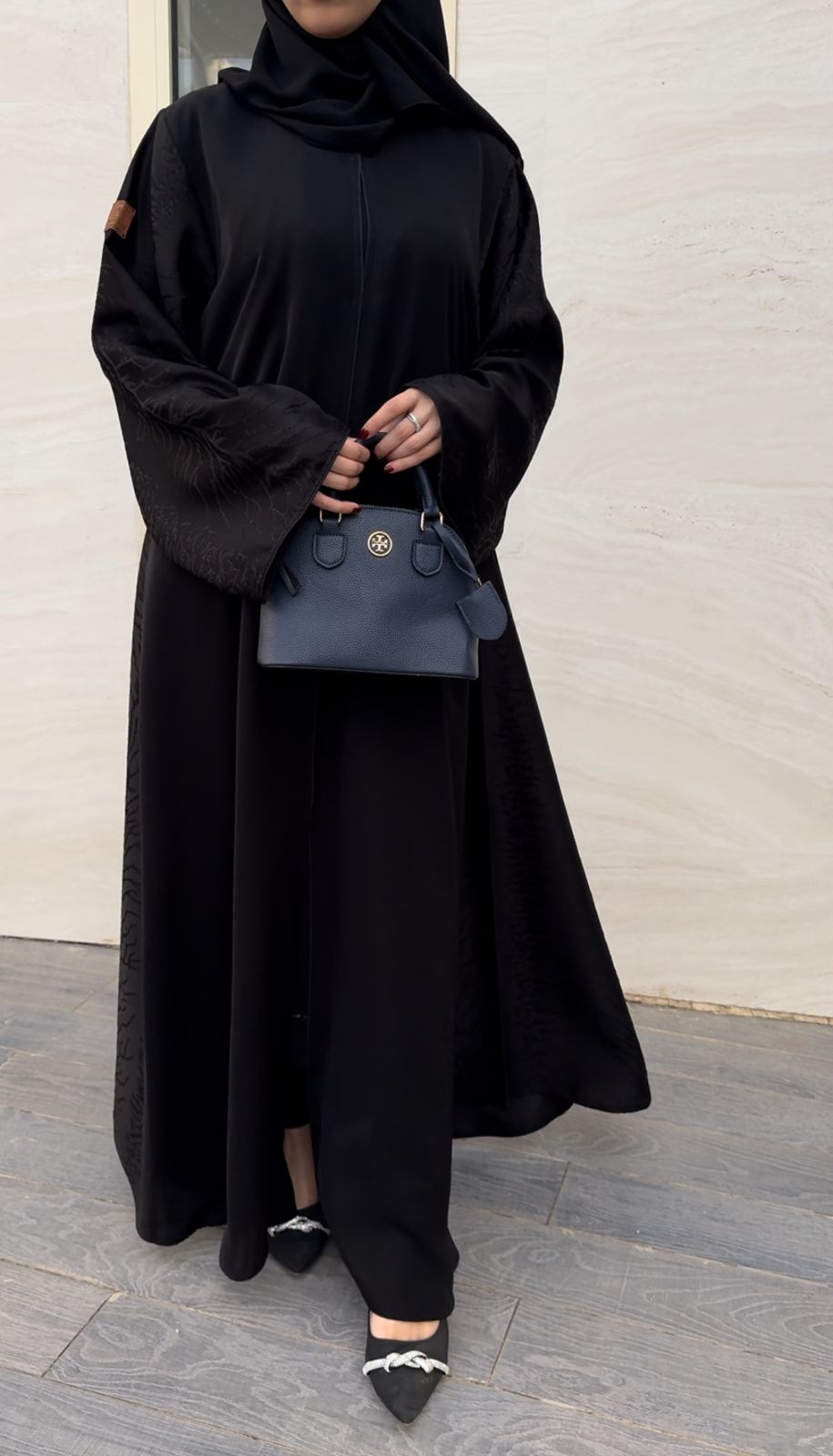 - اكمام العبايه واسعة ومميزة بالاضافة إلى طرحة مجانية كبيرة