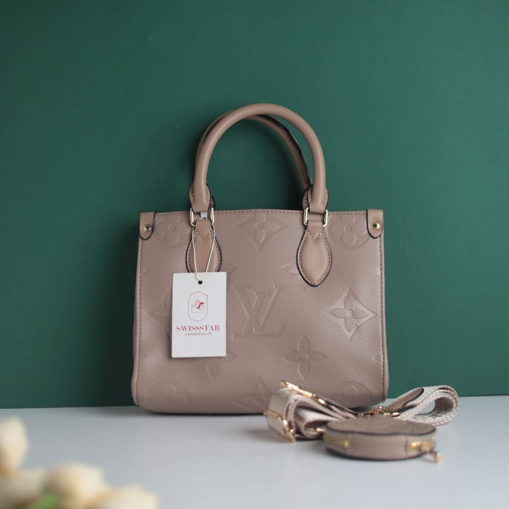 لويس فيتون اون ذا جو و تتميز هذه الشنطة بتصميمها الشهير والمعروف للعلامة التجارية بمقبضين ثابتين يتيحان حمل الشنطة بشكل مريح كما تحتوي الشنطة على شعارات وعلامات مشابهة لتلك الموجودة على الشنطة الأصلية، مقدمة من متجر swiss star.
