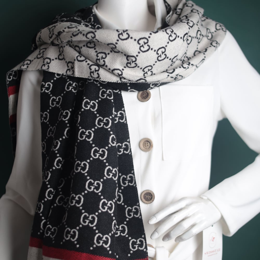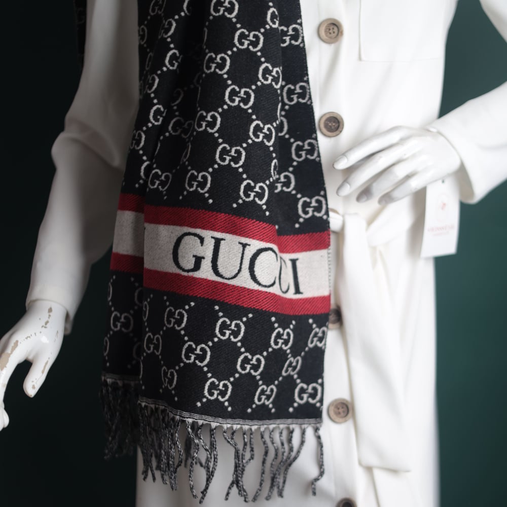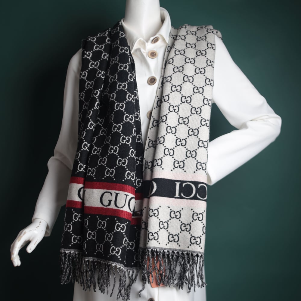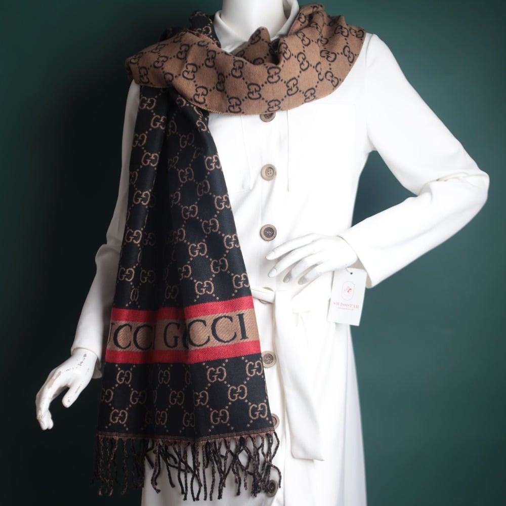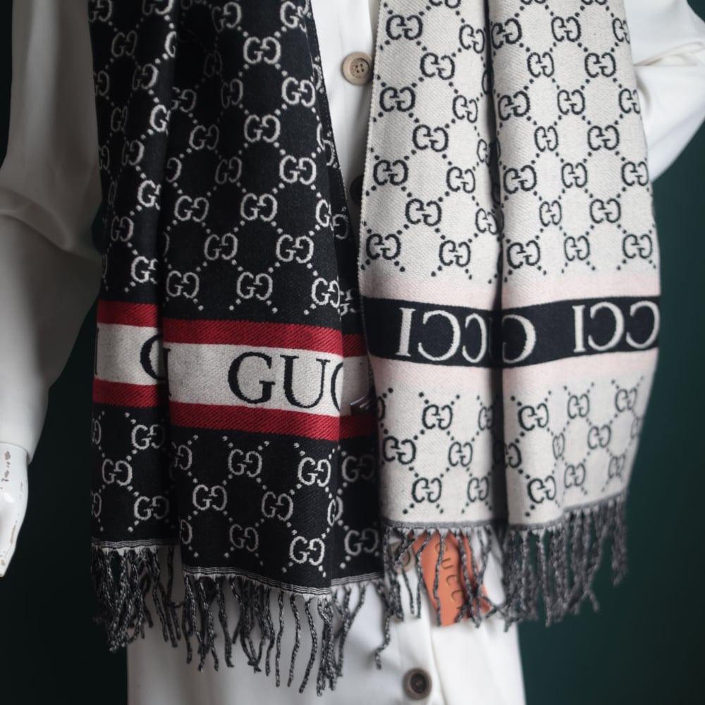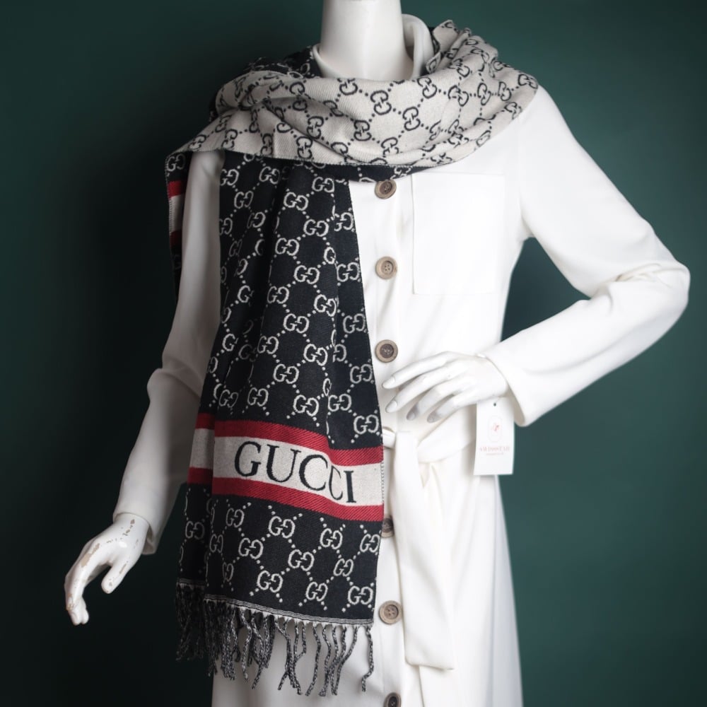 4. Signature of an international brand: The shawl comes with the signature and logo of the Gucci brand, which enhances its luxurious and luxurious character.
